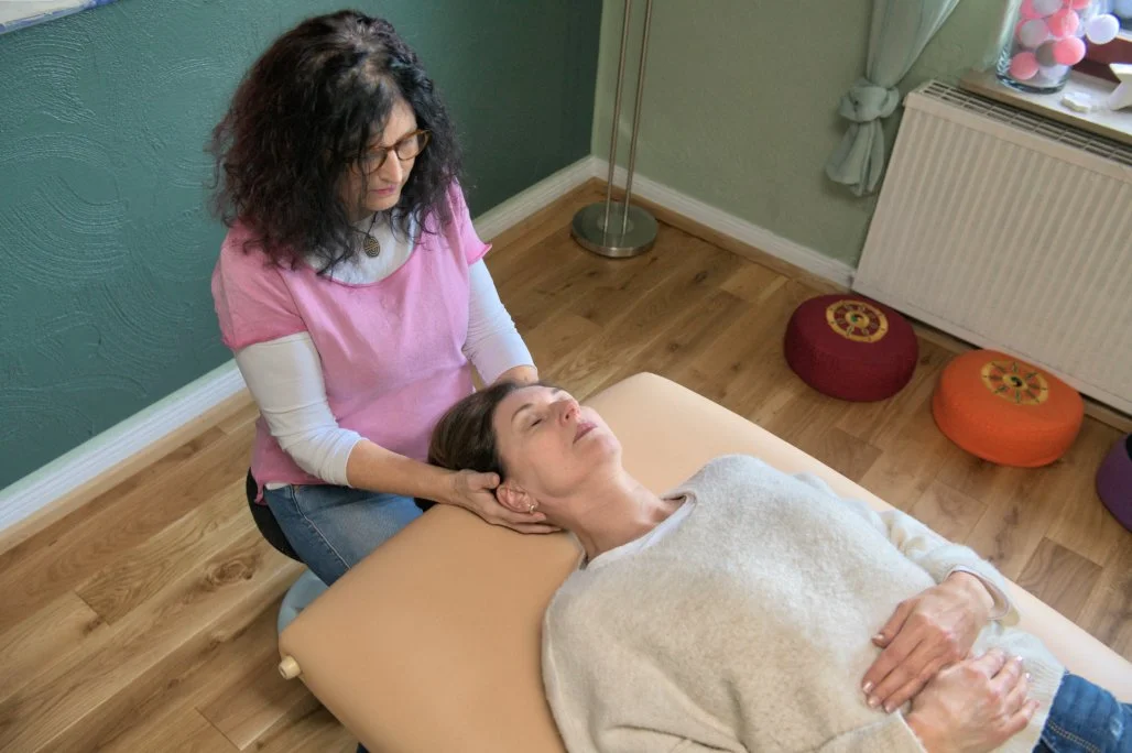 Ich arbeite dabei mit sehr feinen, achtsamen Berührungen, meist im Bereich von Kopf, Wirbelsäule, Becken und Füßen. Dabei ertaste ich Spannungen, Blockaden oder Ungleichgewichte im Gewebe und unterstütze den Körper dabei diese sanft zu lösen. Ziel ist es, das natürliche Gleichgewicht und die Selbstheilungskräfte des Körpers zu fördern. Ein wesentlicher Aspekt dieser Therapieform ist das tiefe Vertrauen in die Intelligenz und Selbstregulationsfähigkeit des Körpers.